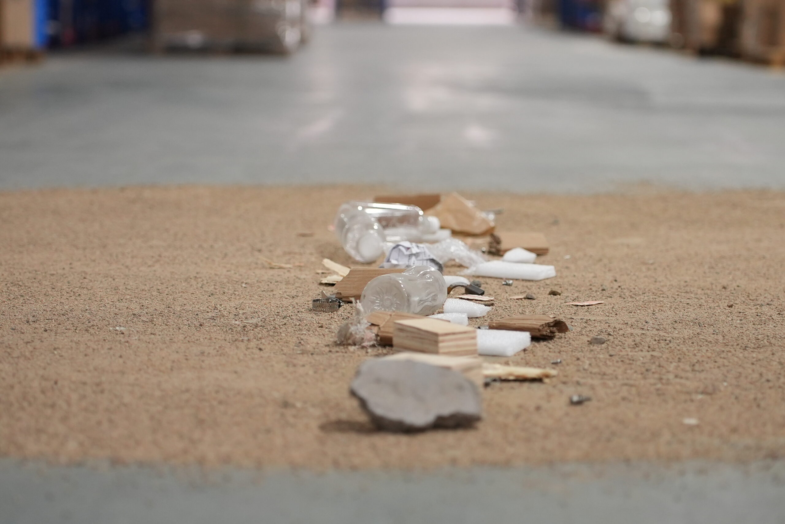 在連續(xù)清掃性能測(cè)試中,我們將紙箱碎片、塑料薄膜、泡沫塊、木屑、碎玻璃、螺絲/彈簧、飲料瓶、大小石塊等常見(jiàn)垃圾依次排開(kāi),BEETLE展現(xiàn)出卓越的連續(xù)清掃性能,能輕松應(yīng)對(duì)各類工廠倉(cāng)庫(kù)的清掃需求。