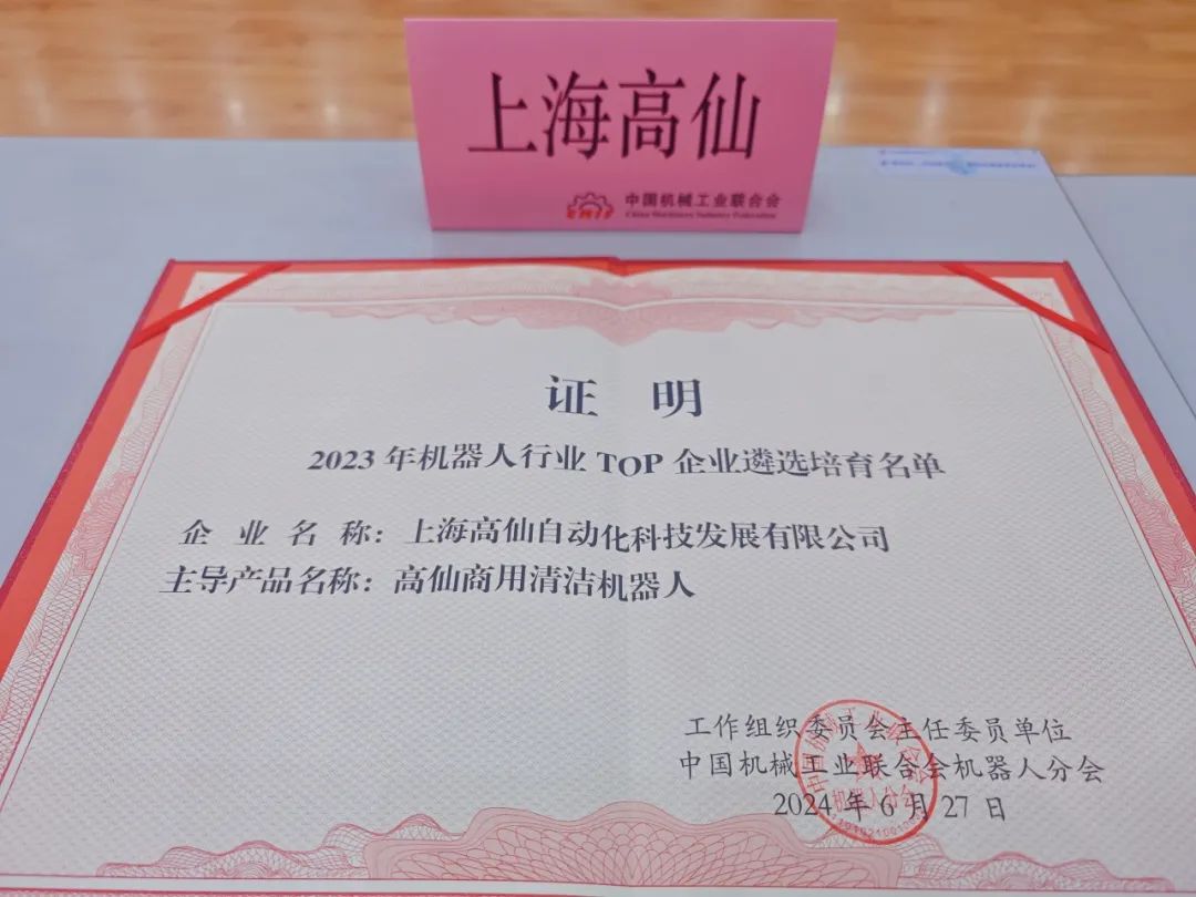 2024年6月27日,2023機器人行業TOP企業遴選培育名單在北京發布,涵蓋工業、服務、特種等全品類機器人領域,高仙機器人榜上有名。在上榜的50家優秀企業中,高仙是唯一一家專注做商用清潔機器人與數字化清潔方案的公司。